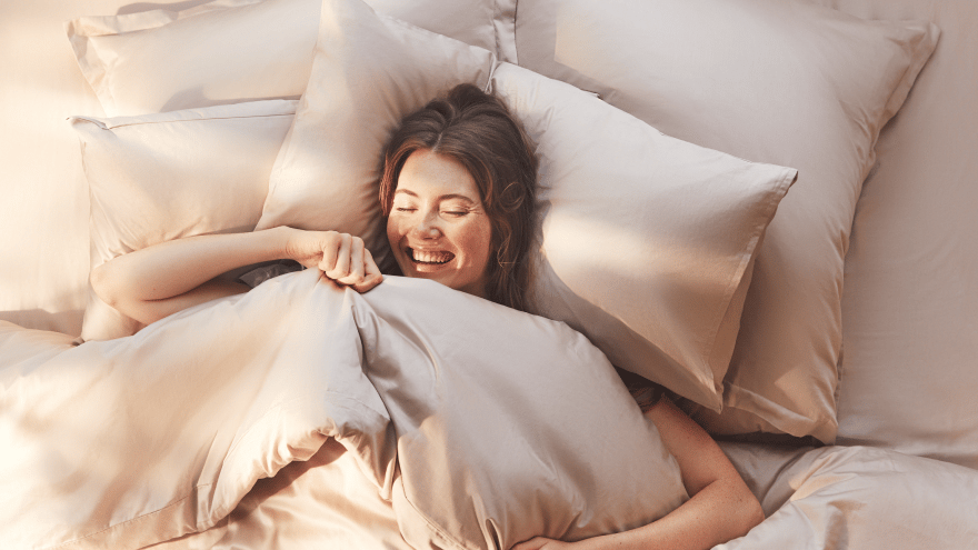 Woven with 100% cotton percale, our thermoregulating material is extra breathable and will keep you cool and sweat-free at night. Its crisp and subtle matte finish offers a pleasant laying feeling.