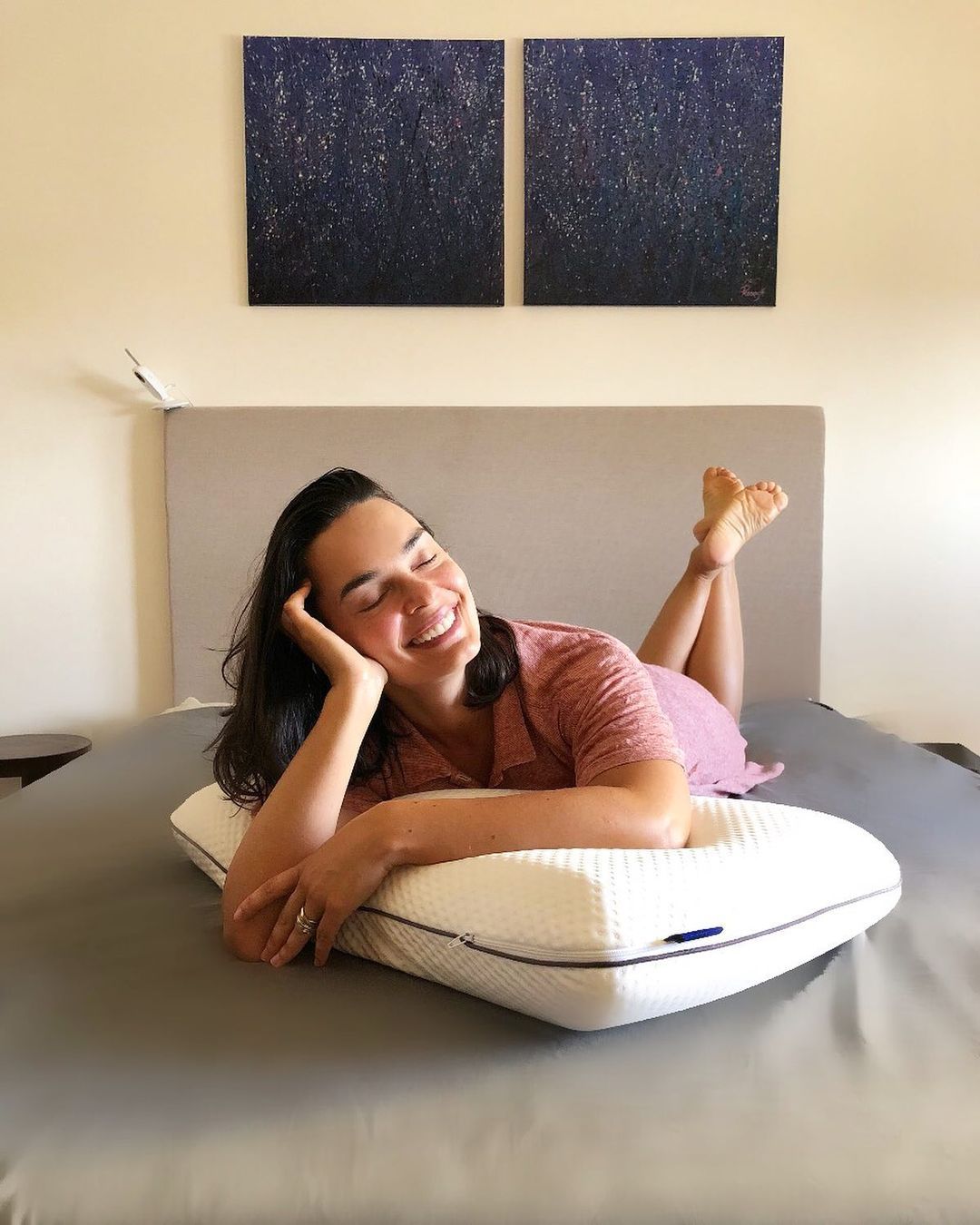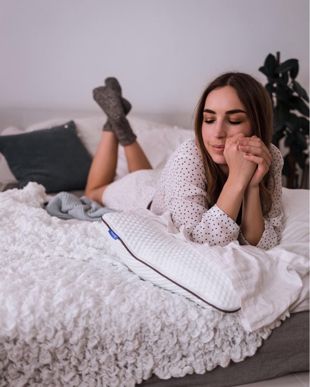 This Gel Memory Foam layer offers a feather-light lying feeling and supports your head while sinking in at the same time. It hugs your neck perfectly and keeps it warm, but not too warm, at night.